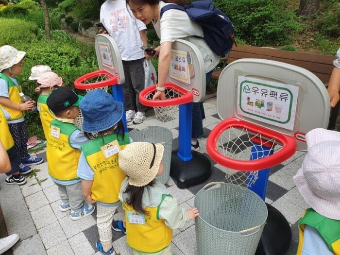 체험 프로그램은 ▲현수막을 재활용해 만든 에코백 꾸미기 ▲황토로 그림 그리기 ▲농구 골대를 활용한 쓰레기 분리배출 ▲북한산 생태공원에 있는 식물 찾기 등 다채로운 내용으로 구성됐다.