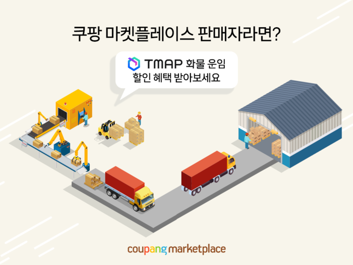[시민일보 = 홍덕표 기자] 쿠팡은 화물 운송 플랫폼 ‘티맵(TMAP) 화물’과 제휴를 맺고, 자사 오픈마켓 서비스 ‘마켓플레이스’ 판매자를 대상으로 티맵 B2B(기업 간 거래) 화물운송 운임을 5% 할인해주는 프로모션을 진행한다고 1일 밝혔다.