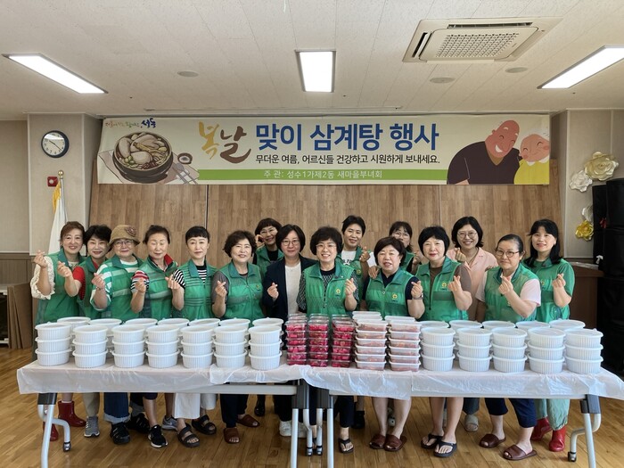 성수1가제2동 새마을부녀회(회장 박인자)에서도 지난 11일 인삼, 대추 등을 가득 넣고 직접 끓인 삼계탕과 김치, 오이양파 초절임 90인분을 저소득 어르신들에게 대접하였다. 거동이 불편한 어르신들에게는 일일이 자택으로 방문하여 삼계탕을 전달하고 안부를 살피기도 하였다.