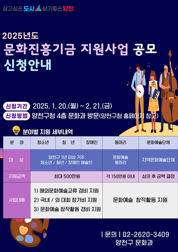 | ▲ 2025 양천구 문화진흥기금 지원사업 신청안내 포스터. (사진=양천구청 제공) |