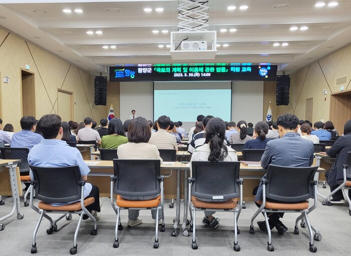 군 관계자는 “갈수록 국토의 계획 및 이용에 관한 법률과 관련한 업무가 다양하고 복잡해져가는 추세”라며 “이번 교육으로 다소 난해한 국토계획법을 직원들이 조금 더 이해하고 직무능력 향상을 할 수 있길 바란다.”라고 말했다.