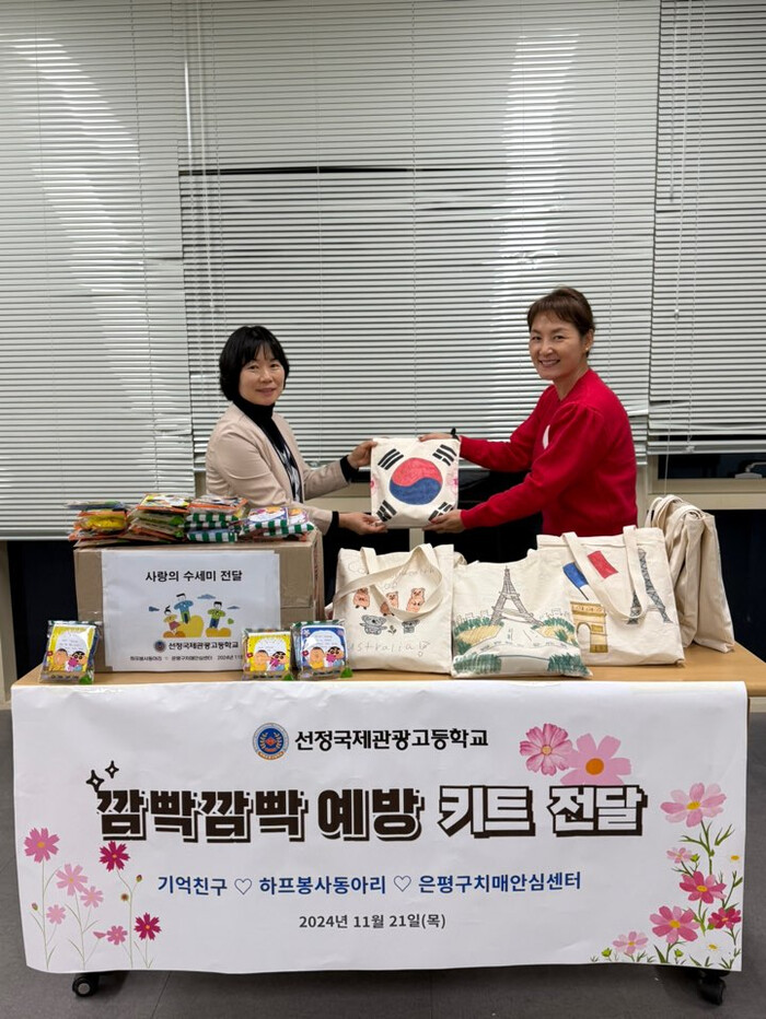 [시민일보 = 이대우 기자] 은평구(구청장 김미경)는 최근 은평구 치매안심센터가 선정국제관광고등학교 봉사동아리 하프봉사단 학생들로부터 직접 만든 인지키트물품을 전달받았다고 밝혔다.
