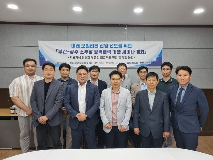 광주광역시(시장 강기정)와 부산광역시(시장 박형준)는 21일 부산대학교 파워반도체상용화센터에서 광주미래차소부장추진단과 부산반도체소부장추진단 공동 주관으로 ‘자율차용 전동화 부품의 SiC(실리콘 카바이드 : 실리콘(Si)과 탄소(C)로 구성된 화합물 반도체 재료. 차세대 전력반도체로 주목) 적용 현황 및 개발동향’을 주제로 한 기술세미나를 개최했다.