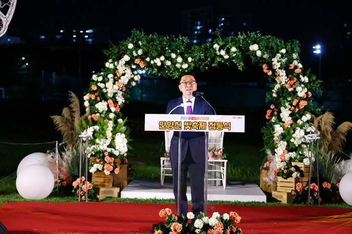 | ▲ 문헌일 구로청장이 안양천 빛축제 점등식에서 인사말을 하고 있다. (사진=구로구청 제공) |