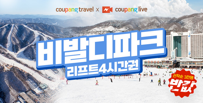 [시민일보 = 홍덕표 기자] 쿠팡트래블이 ‘라방’(쿠팡 라이브)에서 ‘비발디파크’의 리프트권을 반값 특가에 선보인다.