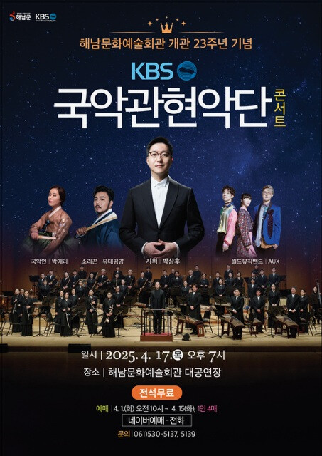 군 관계자는 “우리나라 최고의 수준을 인정받는 KBS국악관현악단의 무대가 군민들에게 품격 있는 문화 예술 향유의 시간이 되길 바란다”며 “문예회관 개관으로 특별히 마련한 국악무대에 군민여러분의 많은 관람을 바란다”고 전했다.