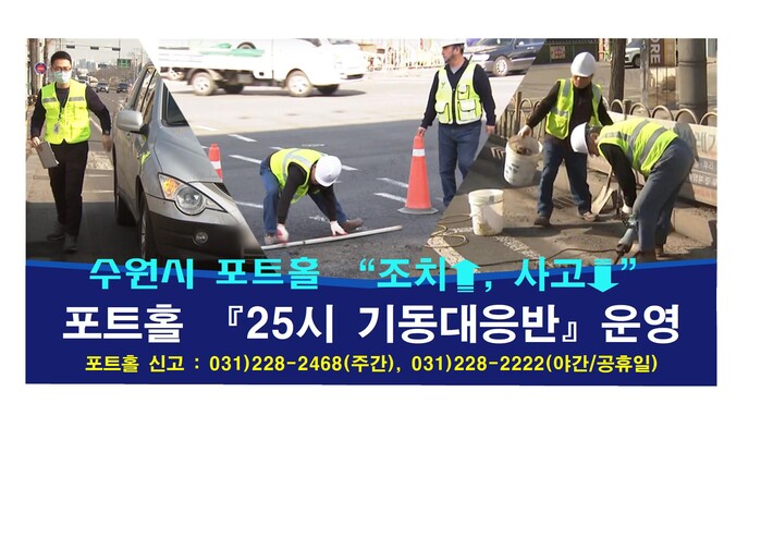 [수원=임종인 기자] 경기 수원시는 시민의 안전을 지키는 데 큰 역할을 한 ‘포트홀 25시 기동대응반’을 확대 운영한다고 밝혔다.