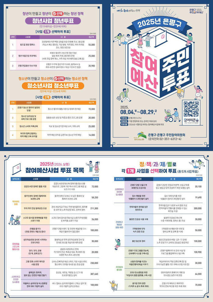 [시민일보 = 이대우 기자] 은평구(구청장 김미경)가 오는 2026년에 실행되는 참여예산사업 선정을 위한 주민투표를 오는 29일까지 진행한다.