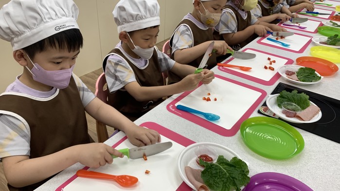 경기 동두천시어린이급식관리지원센터가 지역내 어린이집 만 3~5세 어린이를 대상으로 지난 4~6월 ‘알록달록 롤 샌드위치’ 쿠킹클래스 프로그램을 운영했다. 이번 프로그램에서는 ‘골고루 먹기’라는 주제로 5가지 식품군을 활용한 요리활동을 진행했다. 사진은 최근 쿠킹클래스에 참여한 어린이들이 요리를 하고 있는 모습. (사진제공=동두천시청)