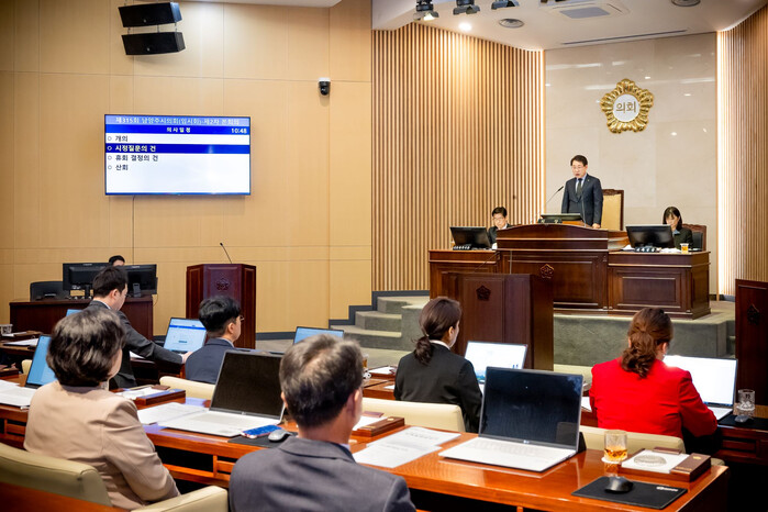 [남양주=최광대 기자] 남양주시의회(의장 조성대)는 24일 제315회 임시회 제2차 본회의를 열고 지난 제1차 본회의에 이어 시정 주요 현안에 대한 날카로운 시정질문을 이어갔다.