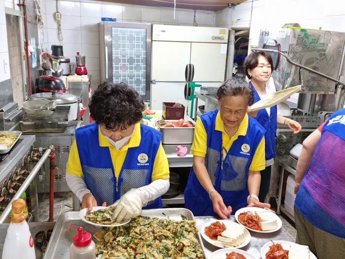 경기 양주시 양주1동 바르게살기운동위원회는 지난 17일 불우이웃돕기 기금 마련을 위한 ‘음식 판매’ 행사를 진행해 다양한 음식을 직접 정성껏 만들어 판매했다. 음식 판매 수익금은 어렵게 생활하는 취약계층을 위한 기금으로 전달될 예정이다. 사진은 위원들이 음식을 준비하고 있는 모습. (사진제공=양주시청)