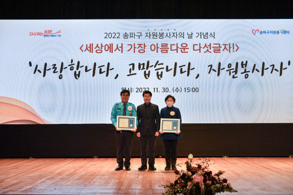 [시민일보 = 이대우 기자] 서울 송파구(구청장 서강석)가 30일 송파구민회관 대강당에서 2022년 자원봉사자의 날 기념행사를 개최했다.