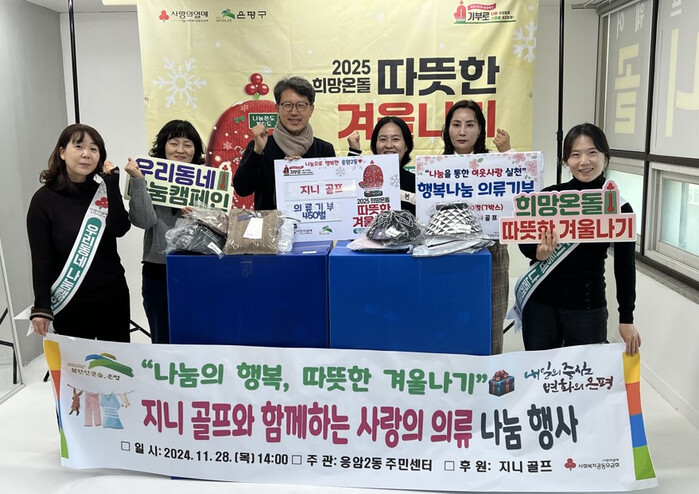 주식회사 지니골프는 2300만원 상당의 의류와 소품을 응암2동에 전달했다. 응암2동은 전달받은 성품을 관내 취약계층 등에 전달할 예정이다.