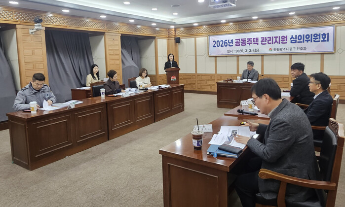 구는 이를 위해 지난 3일 중구청 서별관 회의실에서 ‘2026년 공동주택 관리지원 심의위원회’를 열었다. 이날 위원회는 원도심·영종지역을 포함한 총 149개 단지의 신청 건 중 개선이 시급한 총 58개의 단지에 대해 지원하기로 했다.