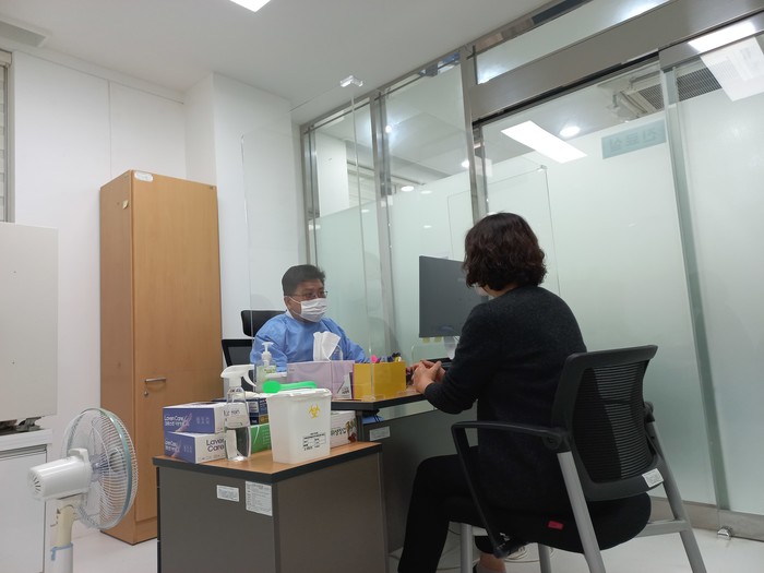 | ▲ 상담센터를 방문한 구민이 롱코비드 휴유증 관련 상담을 받고 있는 모습. (사진제공=강북구청) |