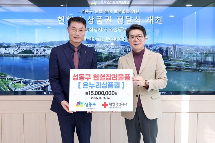 [시민일보 = 박소진 기자] 성동구(구청장 정원오)가 헌혈자 대상 온누리상품권 지급 규모를 더욱 확대해 헌혈 동참 활성화에 나선다고 25일 밝혔다.