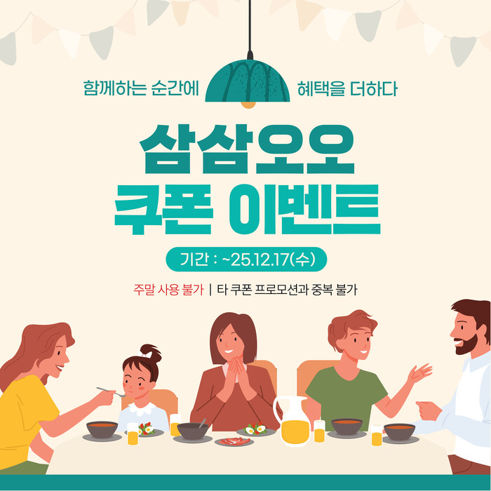 샤브올데이 관계자는 “함께 모이는 순간이 많아지는 계절을 맞아 고객분들께 더 큰 혜택을 드리고자 이번 삼삼오오 쿠폰 이벤트를 준비했다”며 “연말 모임 수요가 높아지는 시기에 가족, 친구, 동료와 샤브올데이에서 더욱 즐거운 시간을 보내시길 바란다”고 전했다.