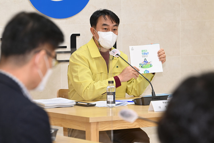 경기 하남시가 16일 시청 상황실에서 '2022년 제1회 하남시 평생교육협의회' 정례회의를 개최했다. 이날 회의는 김상호 시장을 비롯 평생교육 일선에서 활동하고 있는 협의회 위원 등 총 10명이 참석한 가운데 신규 위촉위원 위촉장 전달과 올해 평생교육진흥 시행계획에 대한 협의회 자문에 이어 다양한 의견을 공유하는 자리로 진행됐다. 사진은 김 시장이 의견을 말하고 있는 모습. (사진제공=하남시청)