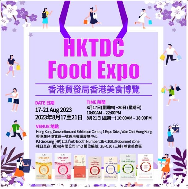 홍콩 무역발전국 HKTDC(Hong Kong Trade Development Council)에서 주최하는 HKTDC Food Expo 식품박람회, HKTDC Beauty & Wellness Expo 뷰티 및 건강박람회, HKTDC Home Delights Expo 라이프스타일 박람회 박람회등 1,700개 이상의 기업이 참여하는 대규모 박람회가 8월 17일부터 21일까지 홍콩 컨벤션전시센터 Hong Kong Convention and Exhibition Centre에서 개최될 예정이다.