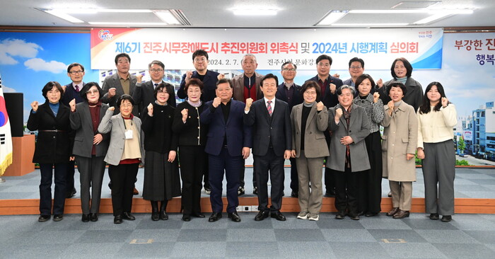 진주시는 7일 시청 문화강좌실에서 제6기 진주시무장애도시추진위원회 위촉식 및 2024년도 무장애 도시 시행계획 심의회를 개최했다.