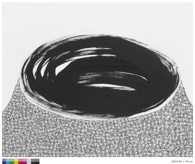 | ▲ 백록담Ⅱ, 820cmx102cm, 판화지 위 먹, 아크릴,2015.3 (사진제공=장윤규) |