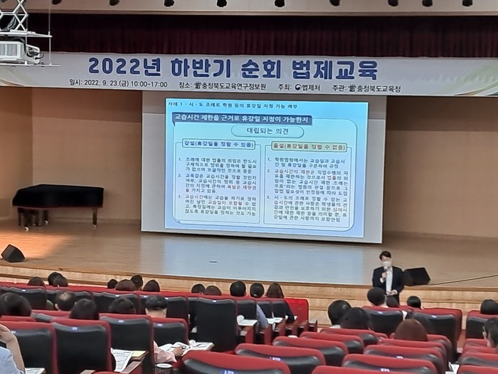 도교육청 관계자는 “이번 교육을 통해 공무원들의 법무행정 역량 강화해 업무처리 과정에서 적법성을 확보하고, 지속가능한 충북 교육행정 구현에 많은 도움이 될 것으로 기대한다.”고 말했다.