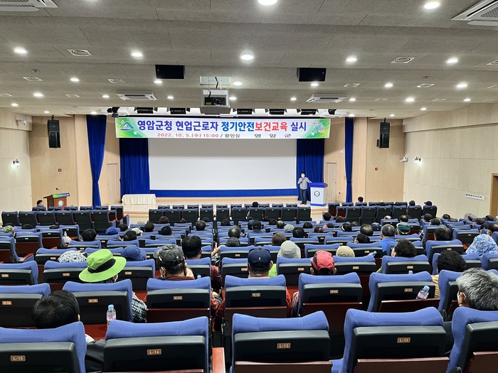 | ▲ 영암군, 산업재해 예방과 안전문화 확산 정착을 위해 지난 5일 왕인실에서 사업부서 담당자와 협업근로자 등 200여 명 대상 산업재해예방 교육 실시 / 영암군 제공 |