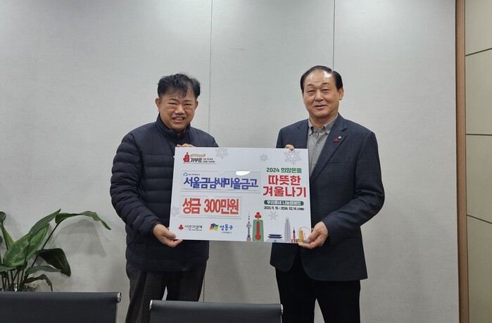 [시민일보 = 홍덕표 기자] 서울 성동구(구청장 정원오) 금호4가동이 서울금남새마을금고로부터 저소득 가구의 따뜻한 겨울나기를 위해 성금 400만원의 기부금을 전달받았다.