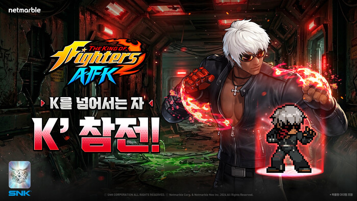 [시민일보 = 여영준 기자] 넷마블은 캐릭터 수집형 AFK 모바일 RPG <킹 오브 파이터 AFK>(개발사 넷마블네오) 신규 파이터 대열에 ‘K'’를 추가했다고 2일 밝혔다.