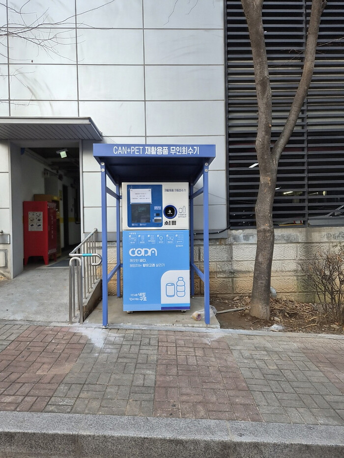 | ▲ 고척1동 마을공영주차장에 설치된 재활용품 무인회수기. (사진=구로구청 제공) |