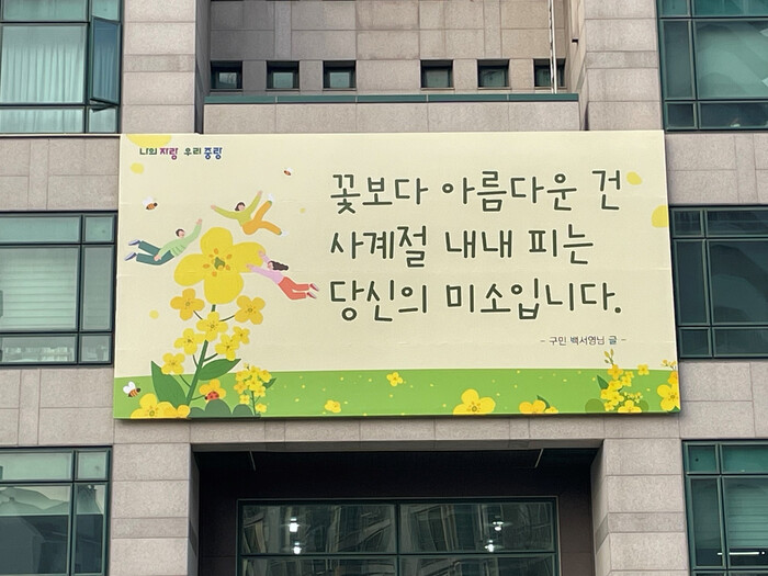 | ▲ 지난 2월 당선된 봄편 문안. (사진=중랑구청 제공) |