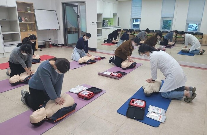 | 연향건강생활지원센터에서 심폐소생술 상설교육을 받고 모습(사진 = 순천시) |