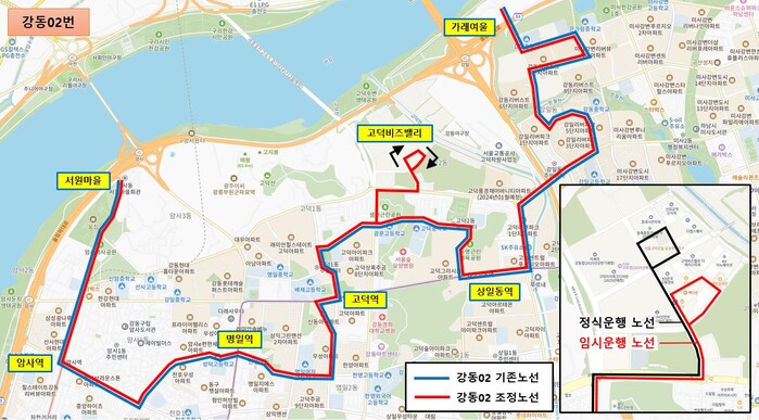 | ▲ 강동02번 조정 노선도. |