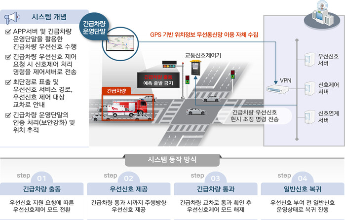 ‘긴급차량 우선 신호시스템’으로 긴급차량(소방차ㆍ구급차ㆍ경찰차 등)이 신호 교차로를 신호대기 없이 우선 통과할 수 있도록 교통신호를 제어해 긴급차량의 골든타임을 확보하고 시민의 생명과 재산을 보호하고 있으며, 구미소방서를 중심으로 5개 구간을 운영 중이고 시스템 개선을 통해 확대ㆍ구축할 계획이다.