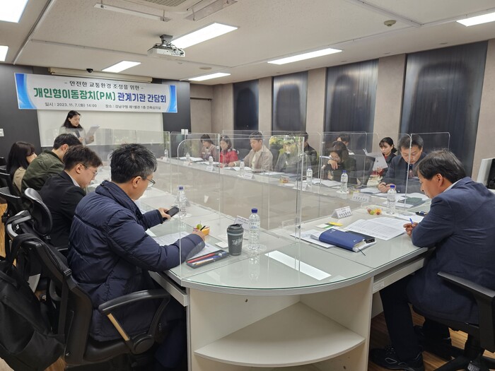 [시민일보 = 이대우 기자] 서울 강남구(구청장 조성명)가 최근 구청에서 서울시, 강남경찰서, 수서경찰서, 한국교통안전공단, 공유킥보드 운영업체 관계자와 간담회를 열고, 개인형 이동장치(PM) 안전 대책을 협의했다.