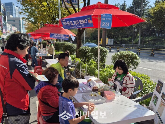 일회용품 사용을 줄이기 위한 실천도 이어졌다. 자투리 실로 재활용 제품을 제작하는 마을공동체 ‘꿈마당’과 연계해 식당 내 다회용 앞치마 사용을 권장하며 친환경 외식 문화를 조성했다.