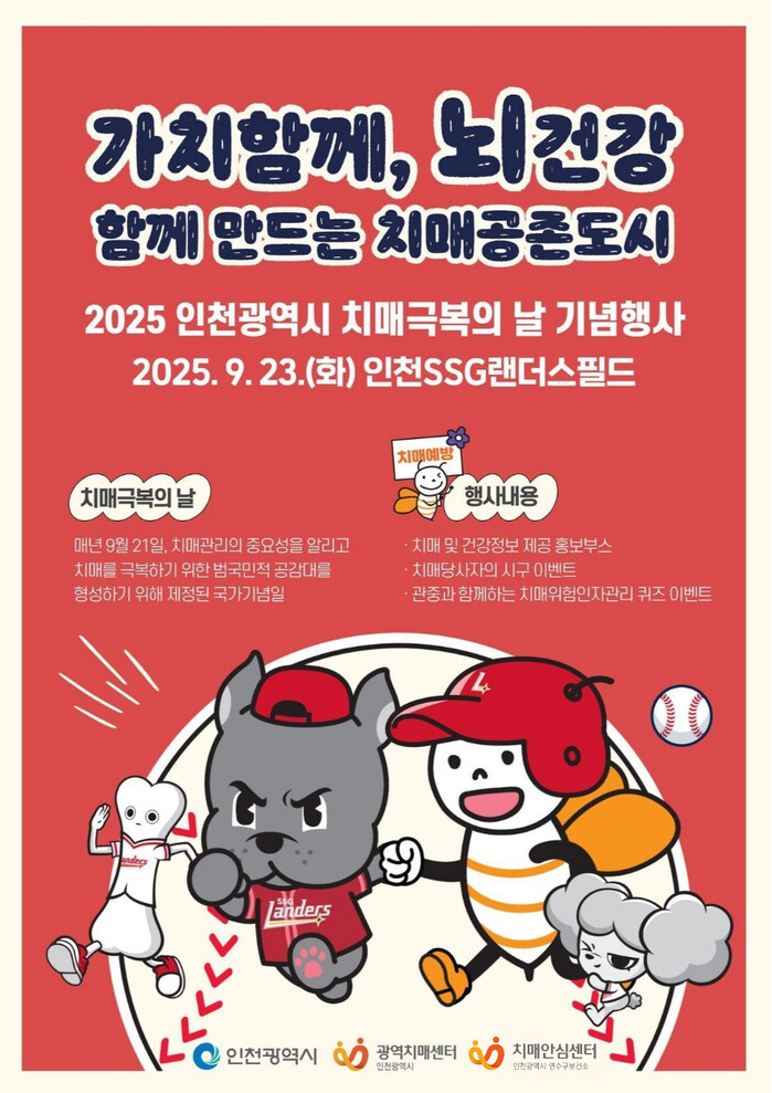 이어, 23일 인천SSG랜더스필드에서 인천광역시와 공동으로 치매극복의 날 기념행사를 진행하며, 관람객을 대상으로 치매예방 O/X퀴즈, 치매예방 관리 팁을 소개한다.