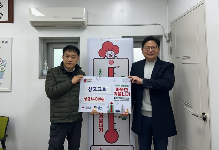 [시민일보 = 홍덕표 기자] 서울 성동구(구청장 정원오) 금호2-3가동은 지역에 위치한 성호교회로부터 어려운 이웃을 위해 써달라며 2024 희망온돌 따뜻한 겨울나기 성금으로 140만 원을 기탁받았다고 밝혔다.