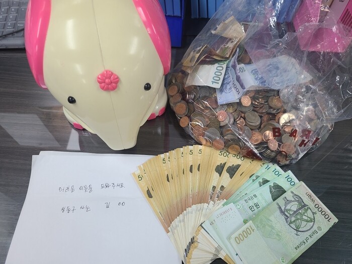 [시민일보 = 홍덕표 기자] 서울 성동구(구청장 정원오) 송정동에 지난 연말 익명의 기부자가 방문해 현금 224만원과 저금통(19만4180원)을 전달하며 총 243만4180원의 성금을 기부했다.