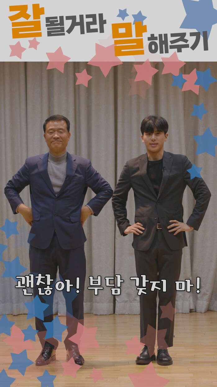 | ▲ 이승로 구청장(왼쪽)이 특별 영상으로 2024학년도 대학수학능력시험 수험생을 응원하는 메시지를 전하고 있다. (사진=성북구청 제공) |