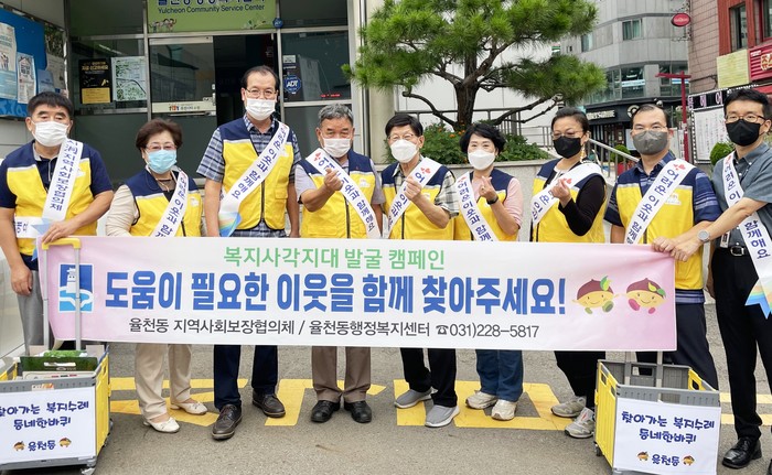 경기 수원시 장안구 율천동 지역사회보장협의체는 최근 지역을 중심으로 마을 곳곳을 돌며 주변의 어려운 위기가구를 찾기 위한 홍보를 진행하는 ‘찾아가는 복지사각지대 발굴’ 캠페인을 실시했다. 사진은 캠페인 참가자들이 기념촬영을 하는 모습. (사진제공=수원시청)