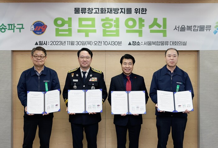 이날 협약식은 서강석 송파구청장, 장만석 송파소방서장, 서병곤 서울복합물류자산관리 대표, 최진우 서울복합물류자산관리 공동 대표와 관계자 20여 명이 참여한 가운데 진행되었다.