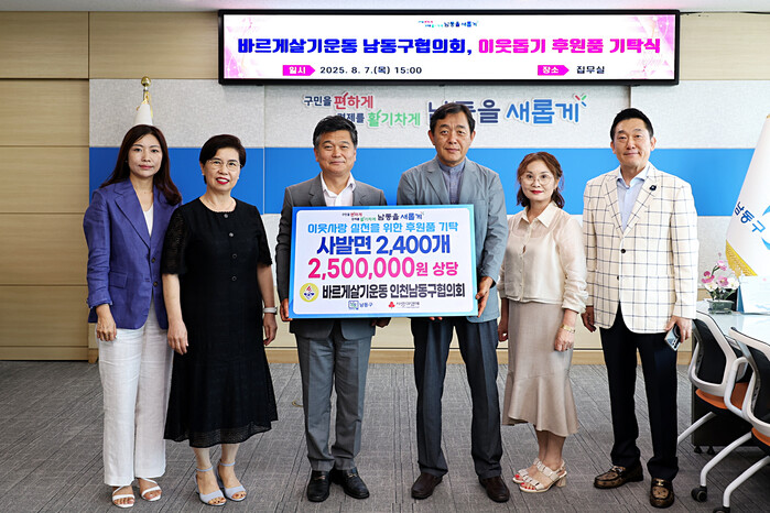 한편, 바르게살기운동 인천남동구협의회는 밝고 건강한 국가, 사회건설에 이바지하는 것을 목적으로 하는 국민운동단체로, 롤화장지, 봉지 김, 계절 김치 등 다양한 후원품을 꾸준히 기부해 이웃들을 위한 나눔을 이어나가고 있다.