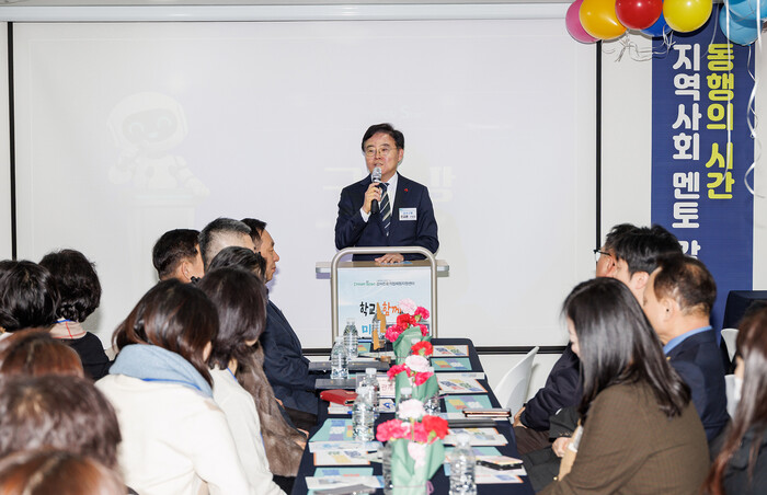 | ▲ 진교훈 구청장이 ‘AI+강서진로직업체험지원센터’ 개소식에서 인사말을 하고 있다. (사진=강서구청 제공) |