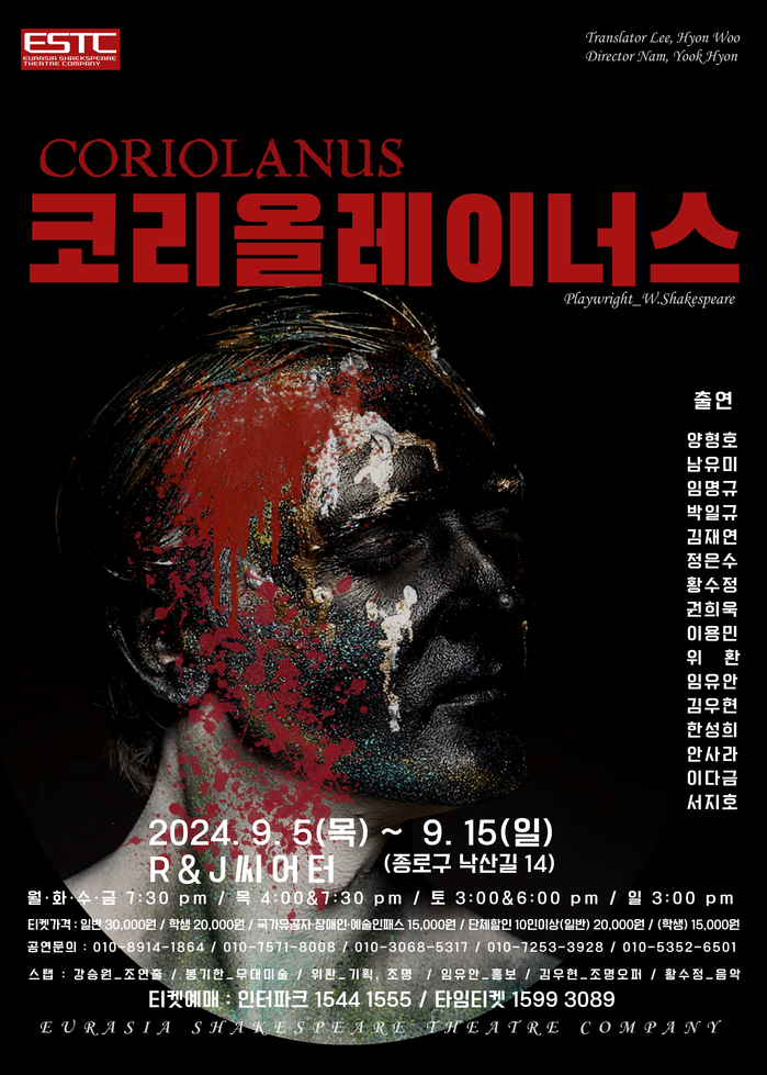 이번 공연에서 고고하게 승승장구했던 장군 코리올라누스의 비극적 파멸을 초래한 가장 핵심적인 동인들이 어떻게 시작돼 어떻게 전개되었는지 코리올라누스를 둘러싼 로마정치와 사회적 문화를 집중적으로 조명하고 특히 코리올라누스와 그의 호민관을 포함한 정치 동료들과의 관계, 볼스키족 아우피디어스와의 갈등과 연합 그리고 코리올라누스의 정서적 성격형성과 로마 최고의 장군 성장에 가장 중요한 영향력을 구축해왔던 모친 볼럼니아와의 관계 등이 약 78%의 운문과 22%의 산문으로 구성된 이 수려한 비극 작품에서 흥미롭게 조명될 예정이다.