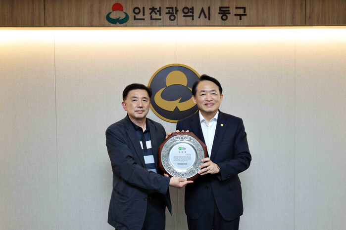 [인천=문찬식 기자] 김찬진 인천 동구청장은 지난 4일 구청 접견실에서 동인천역 일대 도시개발 사업 추진에 기여한 공로를 인정받아 송현자유시장 상인회로 구성된 ㈜중앙상사로부터 감사패를 받았다.