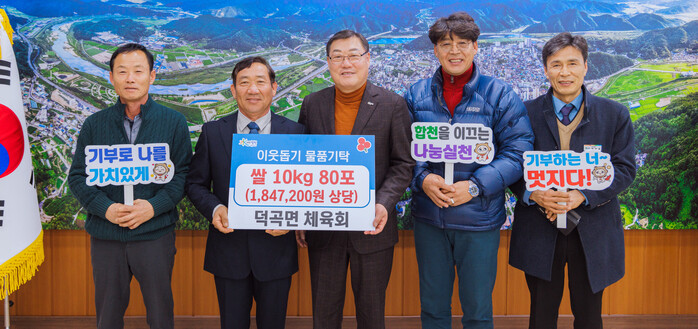덕곡면 체육회는 지난해에도 이웃돕기 성금을 기탁하며 따뜻한 이웃 사랑의 행보를 이어나가고 있으며, 매년 체육대회, 경로잔치 등 다양한 봉사활동에 솔선수범하며 지역사회에 온정을 나누고 있다.