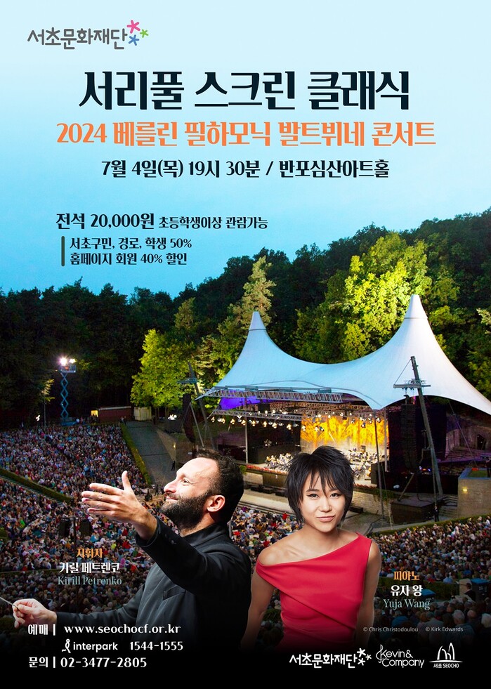 반포심산아트홀에서 만나는 “2024 베를린 필하모닉의 발트뷔네 콘서트”서리풀 스크린 클래식은 전석 2만원으로 자세한 사항은 서초문화재단 누리집 통해서 확인이 가능하다.