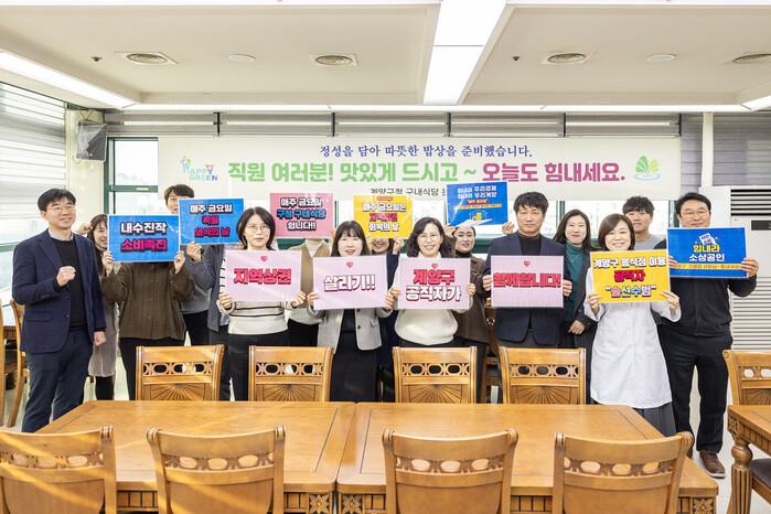 계양구는 매주 금요일을 ‘골목상권 회복, 전 직원 외식의 날’로 지정해 구청구내식당 운영을 잠시 멈추고 공직자가 내수진작 등 침체된 경기회복에 적극 동참하기로 했다.