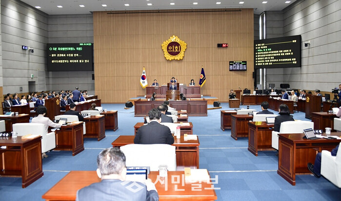 한편, 이날 본회의에서는 ▲이명노 의원, “광주 수돗물 변색, 조사하고 대응하라” ▲명진 의원, “광주형 평생주택 사업 중단 대책 마련해야” 라는 주제로 5분 자유발언이 이뤄졌다.
